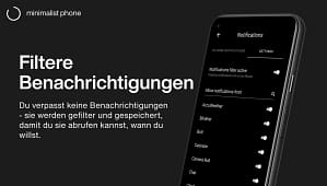 Wer digitalen Minimalismus am Smartphone erstmal ausprobieren will, der kann mit Apps starten, die das Smartphone mit einer minimalistischen Schwarzweiß-Nutzeroberfläche in ein minimalistisches Gerät verwandeln, das aussieht wie aus dem Chanel-Laden.